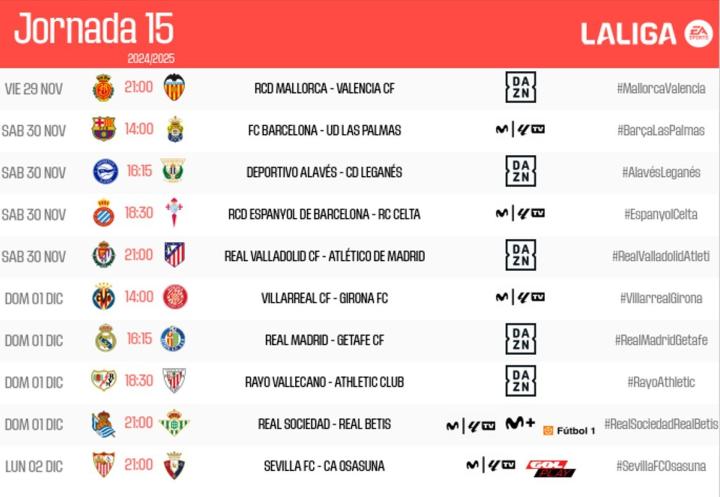 西班牙足球甲级联赛,即西甲官方公布了第15轮比赛的开球时间。其中,马略卡将在北京时间11月30日凌晨4点迎战瓦伦西亚。这场比赛将是当晚的首场开球。
